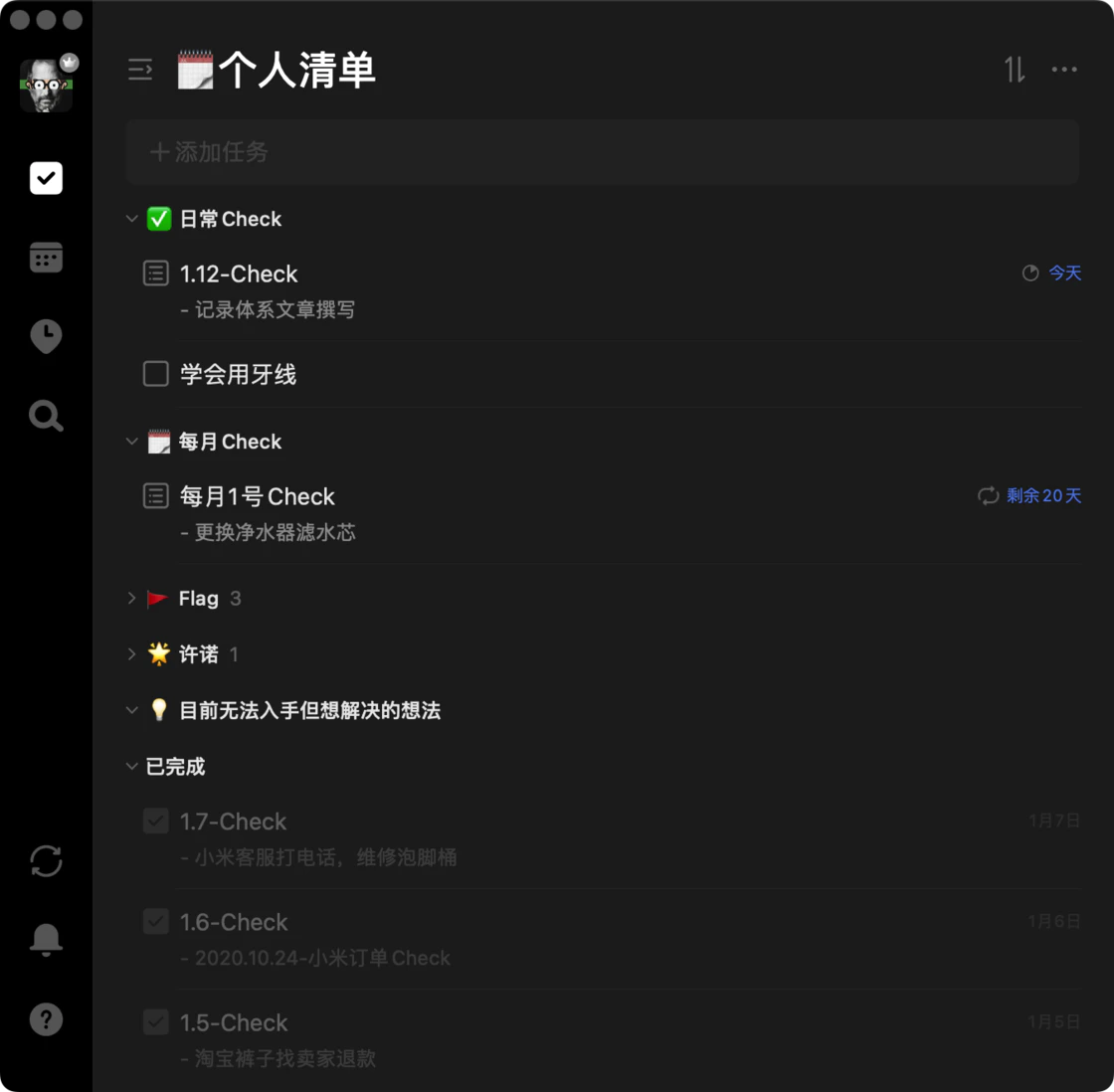 目前还在用的待办清单 App 是滴答清单,免费版的功能已经足够我使用了。